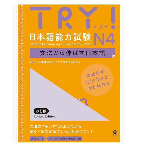 “TRY! Japanese Language Proficiency Test N4 – Learn Grammar in Context” is part of the well-known TRY! series created by the Asia Student Cultural Association (ABK).